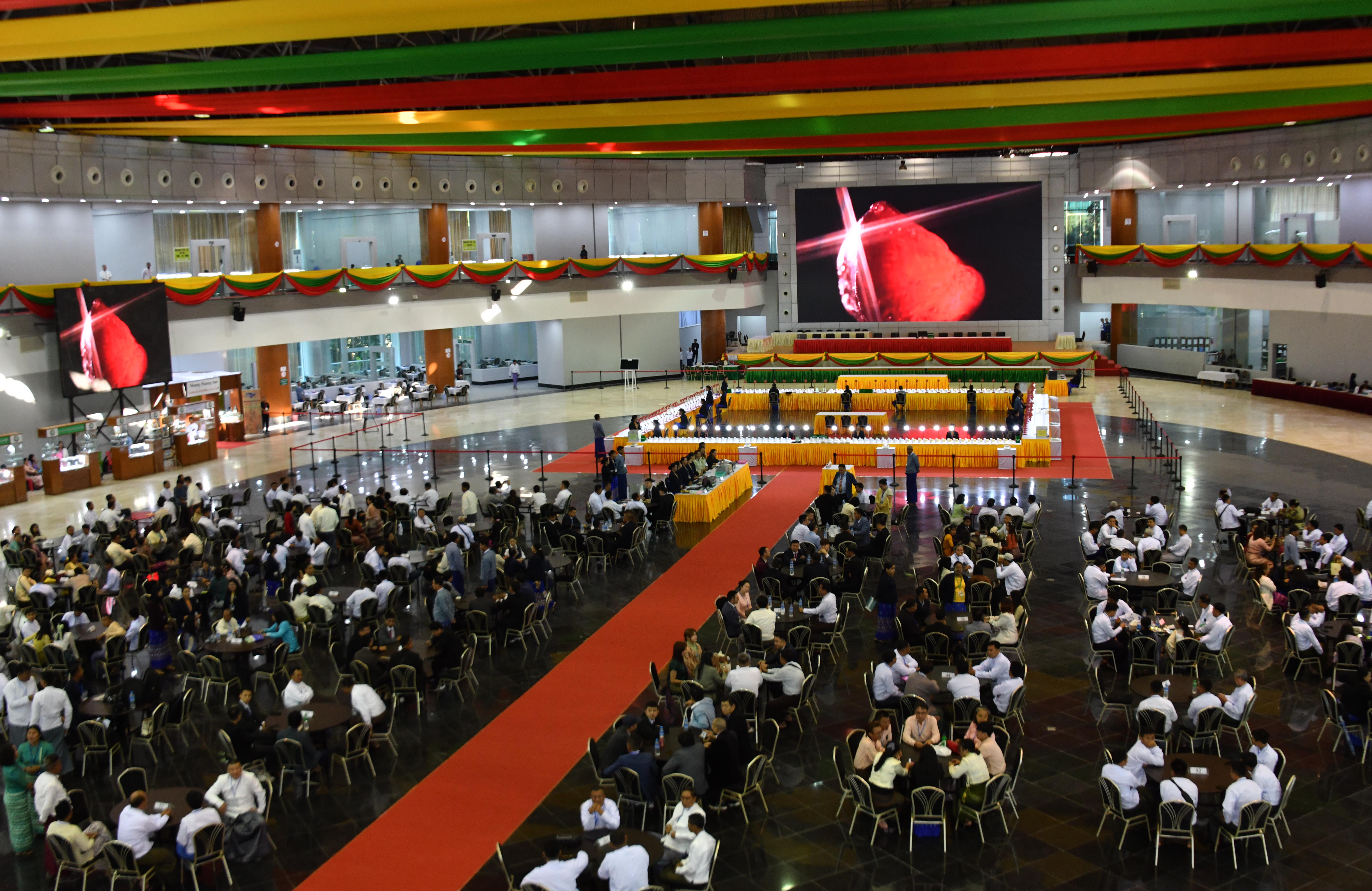 ၂၀၂၅ ခုနှစ်၊ (၆၀)ကြိမ်မြောက် မြန်မာ့ကျောက်မျက်ရတနာပြပွဲပထမနေ့ကို ယနေ့နံနက်ပိုင်းတွင် နေပြည်တော်ရှိ မဏိရတနာ ကျောက်စိမ်းခန်းမ၌ ကျင်းပရာ ပြည်တွင်းပြည်ပ ရတနာကုန်သည်များဖြင့် စည်ကားလျက်ရှိသည်။
